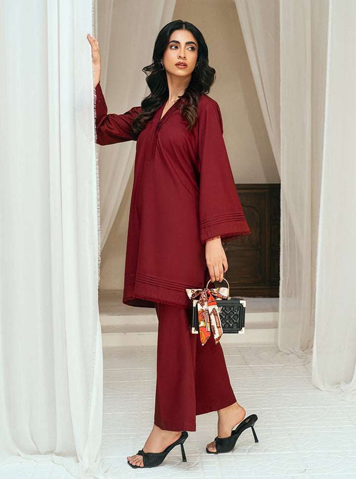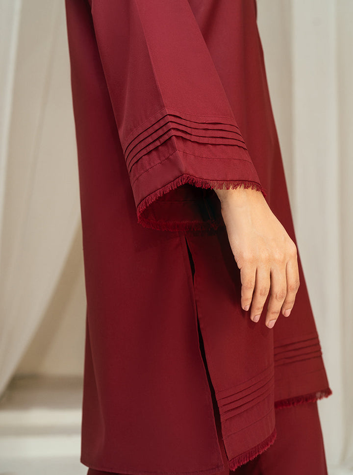 Rangeen Stitched 2 Piece Scarlet Co-Ord Set - Red Carmine