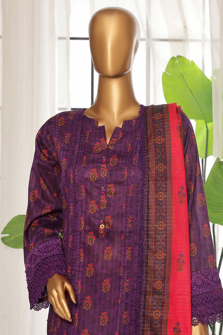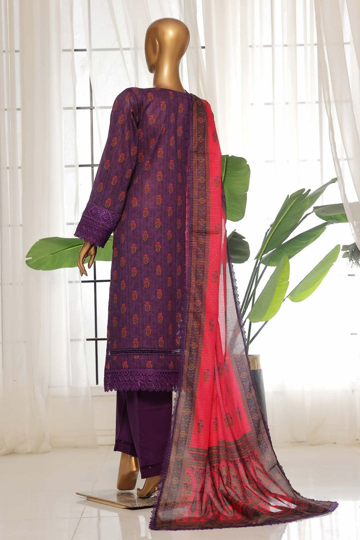 - Stitched 3 Piece Emb Lawn Suit