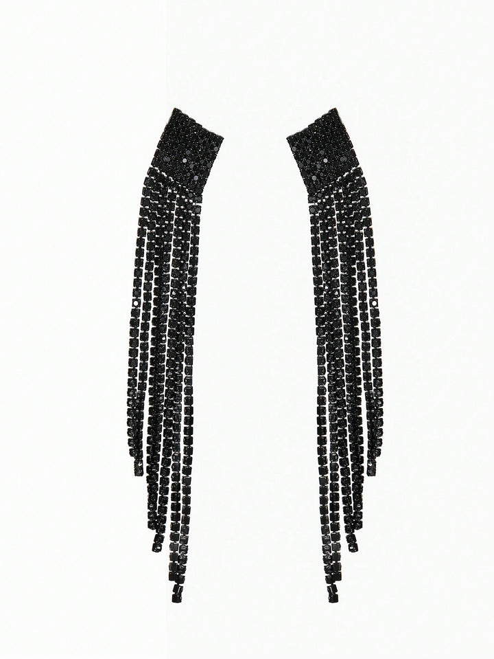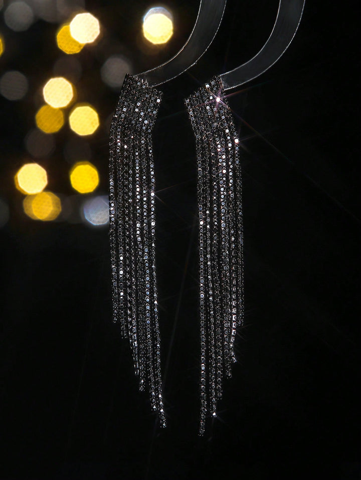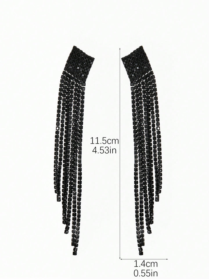 Shein - Red Club Bar Tassel Green Crystal Earring for Women 1Pair 10-12cm
