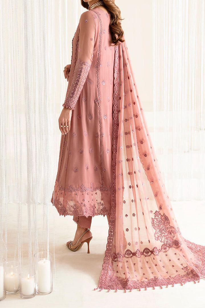 Embroidered Pearl Embellished Front & Back Daman Border Organza