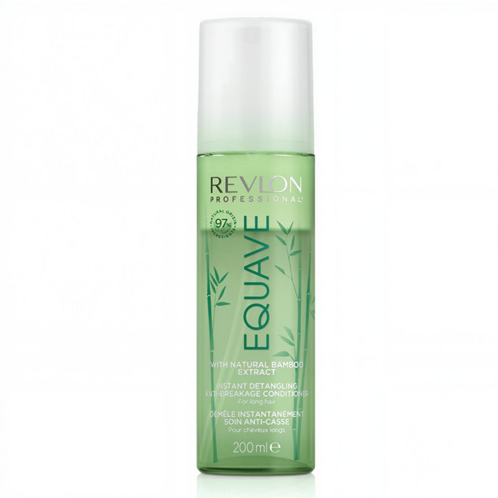 The perfect first step in your care routine for fine and long hair is the Instant Detangling Anti-Breakage Conditioner from Revlon Professional's Equave™ line! Shaking the weightless, two-phase formula activates innovative Kinetic Technology™, which instantly detangles and makes hair four times more resistant to breakage. While reducing existing split ends and preventing new ones from appearing, the formula allows hair to gain natural fullness and volume. Detangled and strong hair is optimally prepared for styling, as the leave-in spray treatment offers heat protection up to 220°C. It is inspired by the natural elasticity & strength of bamboo and formulated with 97% natural origin ingredients.