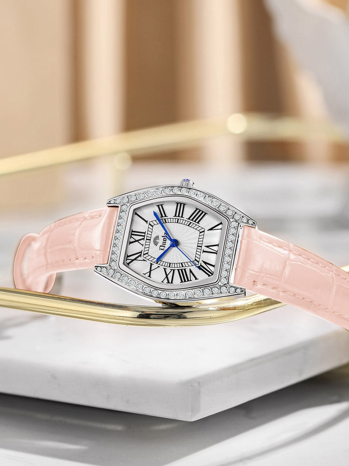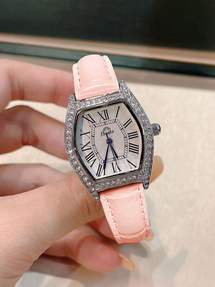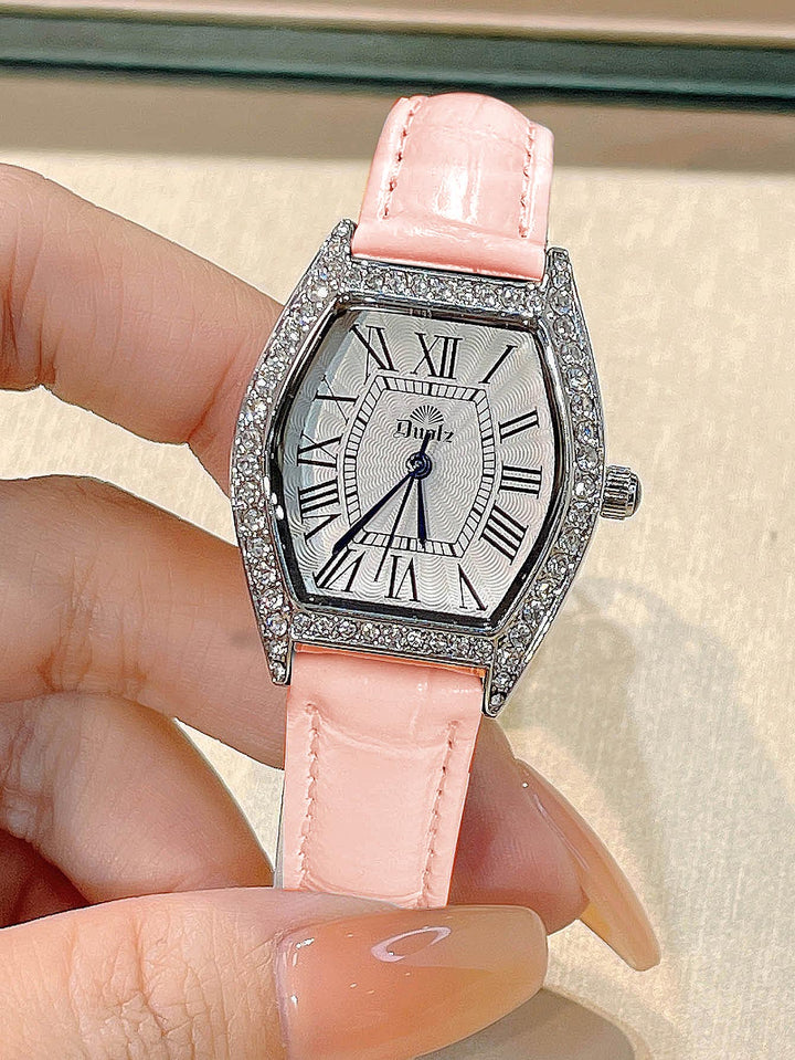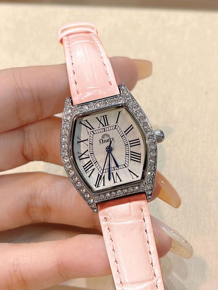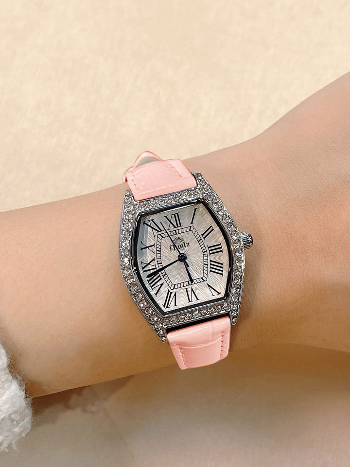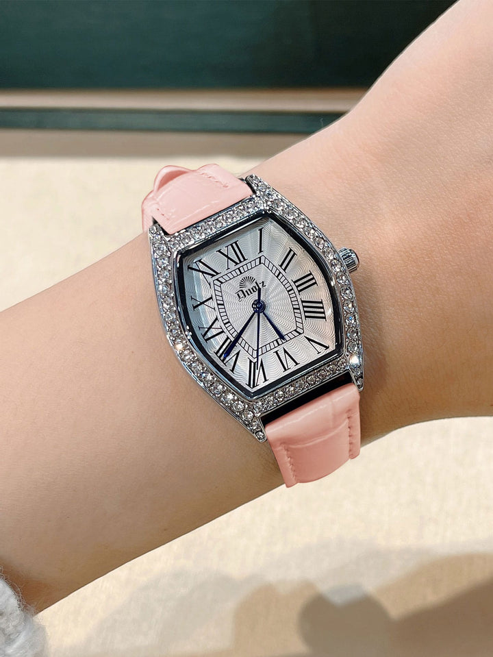 Shein - Rhinestone Decor Polygon Pointer Quartz Watch