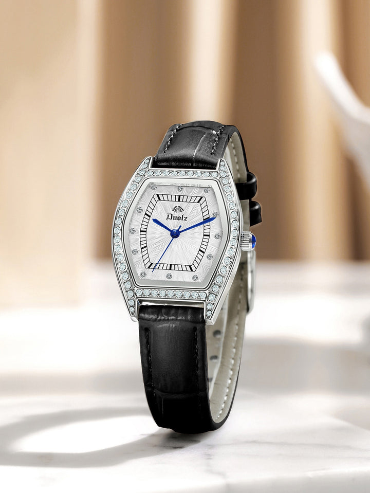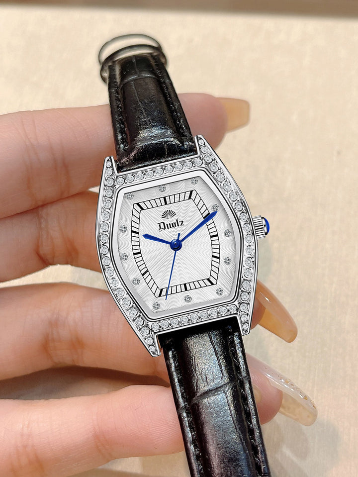 Shein - Rhinestone Decor Tonneau Pointer Quartz Watch