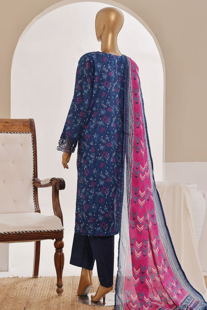 Sada Bahar Stitched 3 Piece Cutwork Emb Lawn Vol-04 Collection'2024-CW-11437-Navy Blue