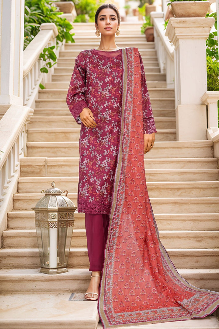 Indulge in timeless elegance with the Sada Bahar Stitched 3-Piece Luxury Cutwork Vol-01 Collection'2025-CW-5294 in a rich Maroon hue. This stunning ensemble showcases the perfect fusion of intricate cutwork embroidery and striking prints, making it a must-have for the fashion-forward.