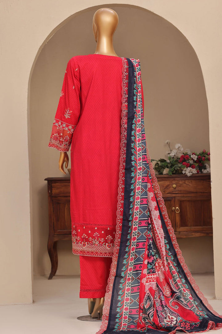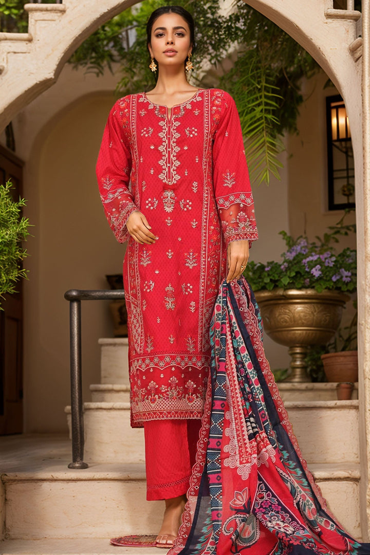 Sada Bahar Stitched 3 Piece Premium Emb & Printed Lawn Collection'2024-D-1068-Red
