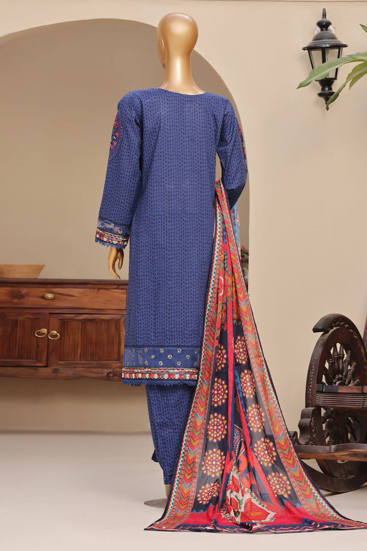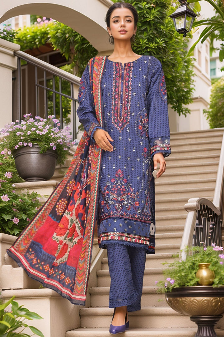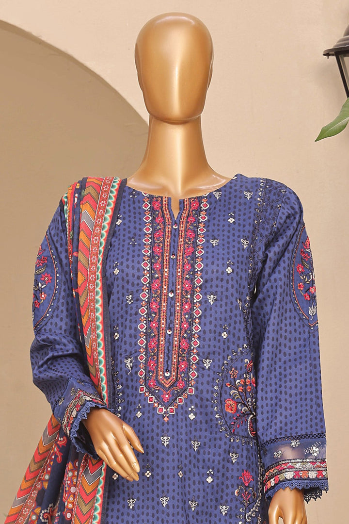 Sada Bahar Stitched 3 Piece Premium Emb & Printed Lawn Collection'2024-D-1233-Blue