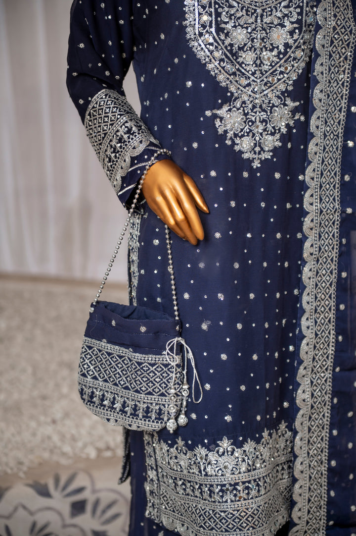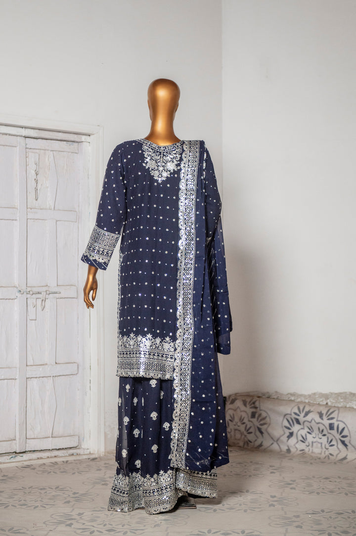 Saira Sultana Stitched 3 Piece Formals Collection-Mah-Jabeen - Navy Blue
