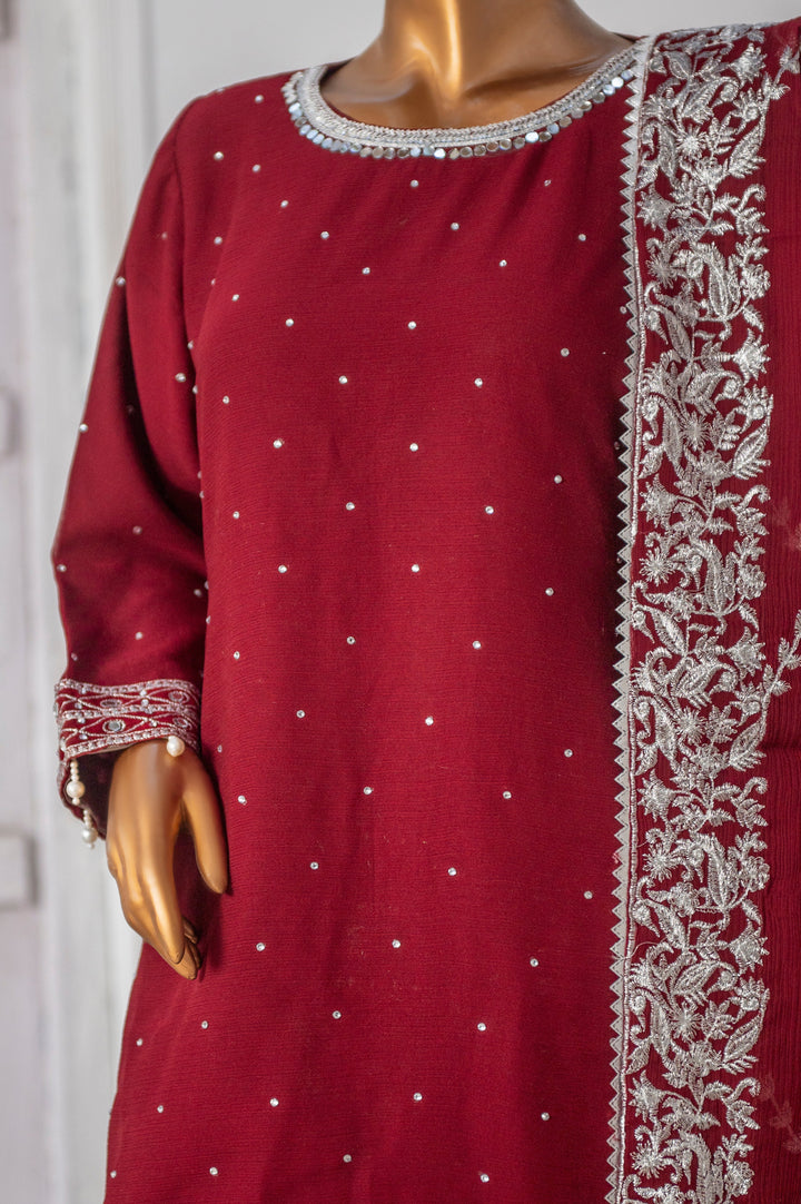 Saira Sultana Stitched 3 Piece Formals Collection-Rubab - Maroon