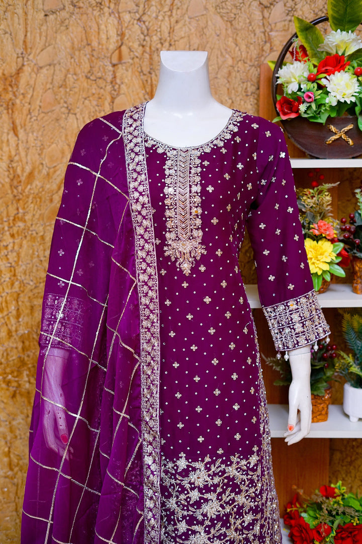 Saira Sultana Stitched 3 Piece Wedding Formals Collection-Mahrosh - Plum