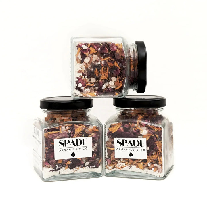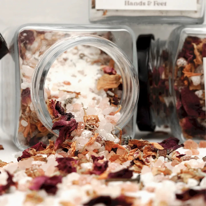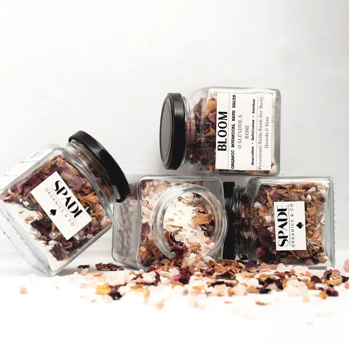 Revitalize your skin and ease muscle pain with Bloom Salt Soak. Infused with organic oils and mineral-rich salts, it's an essential addition to your bath and spa routine.