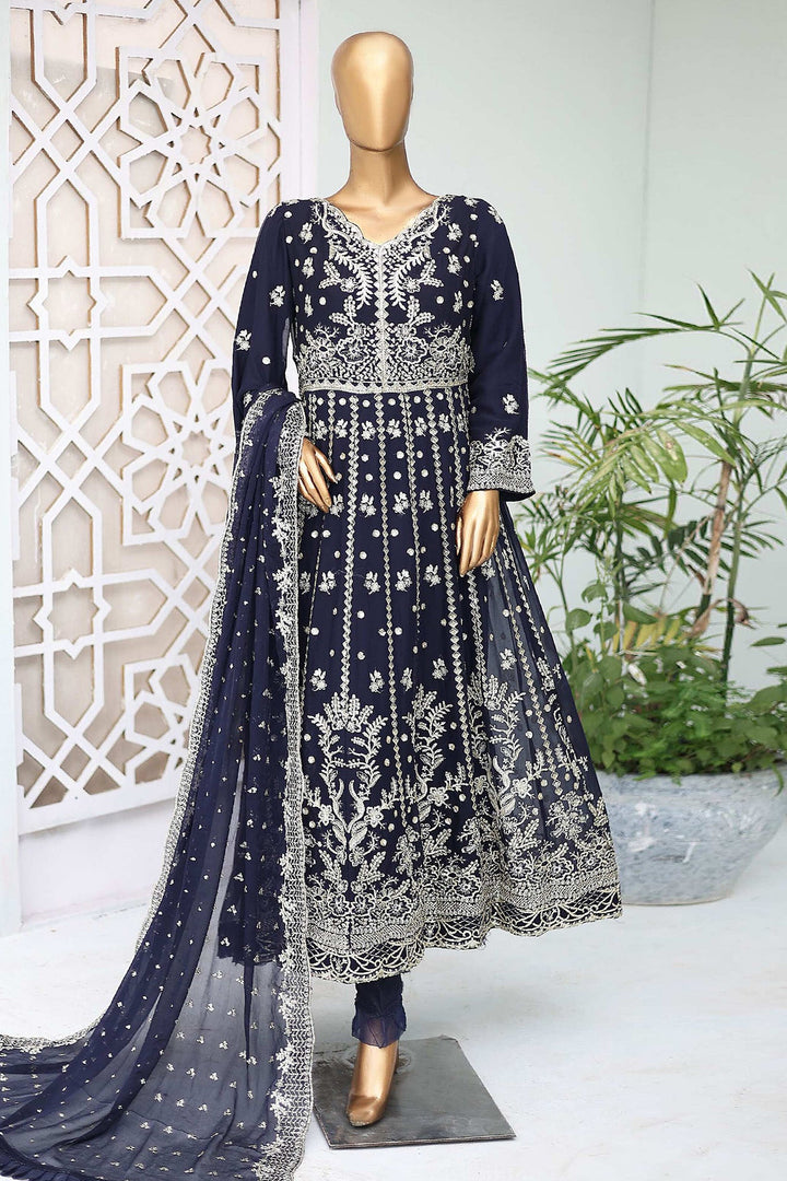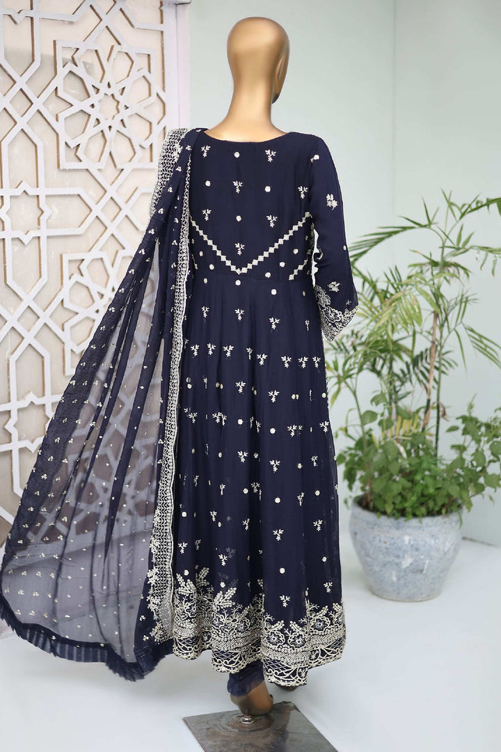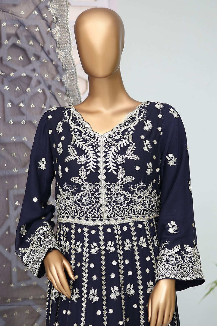 Shazlin By Bin Saeed Stitched 3 Piece Emb Chiffon Frocks Collection'2024-RTSC-992-Navy Blue