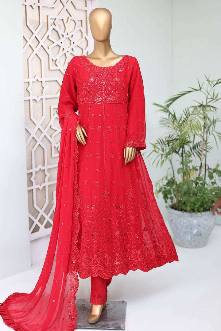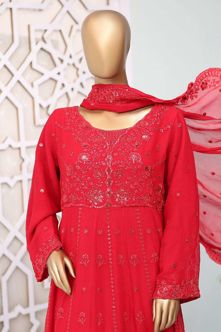 Shazlin By Bin Saeed Stitched 3 Piece Emb Chiffon Frocks Collection'2024-RTSC-994-Red