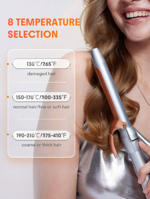 [LED Display, 8 Temperature Options]The LED display temperature of the automatic curling iron is 130-210℃, with 8 temperature settings, suitable for people with various hair types (coarse, medium, fine and soft). Please choose the appropriate setting for your hair....More