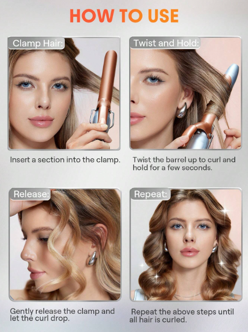 [Hair Care Without Hair Damage,Anti-Card Hair Design]The curling iron is coated with Gloss Pro™ keratin coating, which heats more evenly, reduces heat damage and frizz, and provides uniform and consistent heat when styling, which can create high-gloss curls and healthy hair. In addition, the anti-card hair clip design of this curling iron does not worry about pulling your hair.