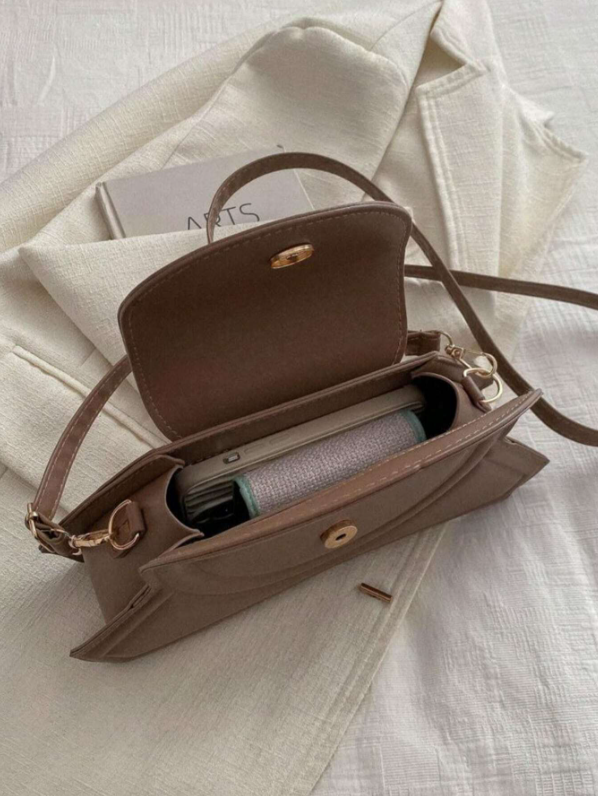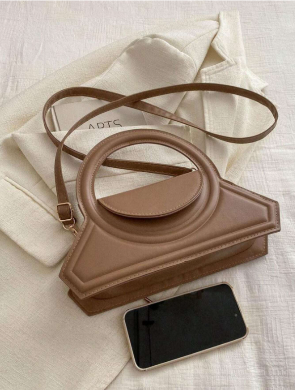 Shein - 1 Fashionable Circular Hand-Held Shaped Bag, Solid Color Minimalist Crossbody Bag
