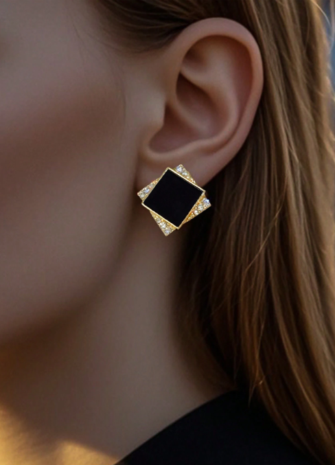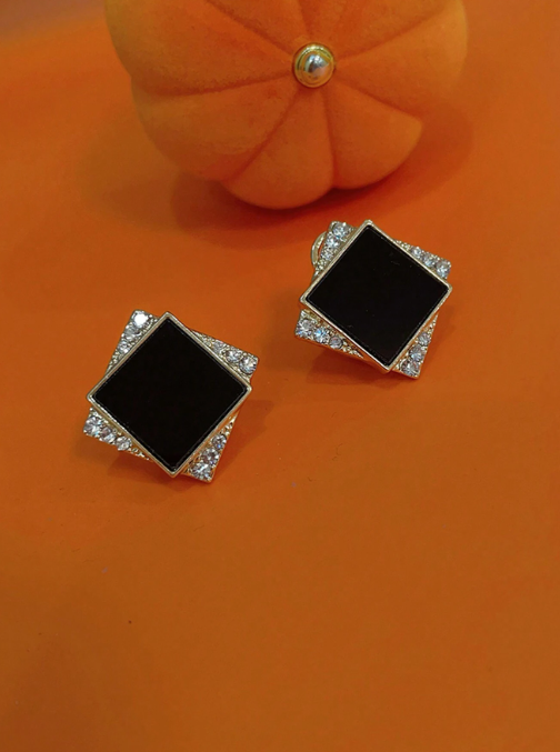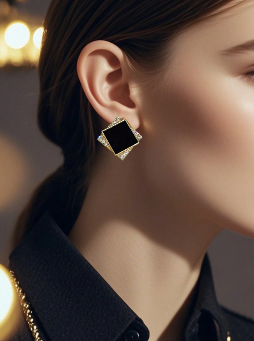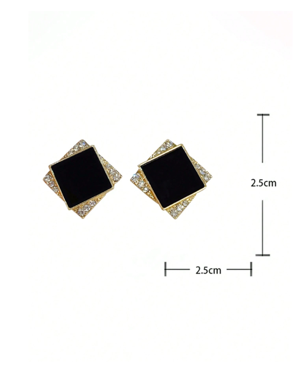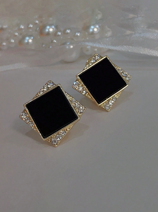 Shein - 1 Pair Black Square Rhinestone Geometric Pattern Minimalist Trendy Stud Earrings
