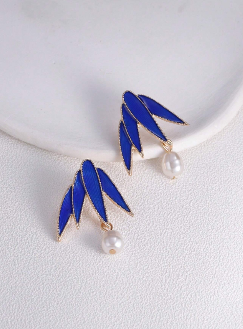 Shein - 1 Pair Chinese Style Bamboo & Pearl Earrings, High-End Niche Design Blue