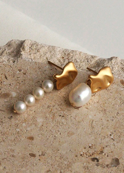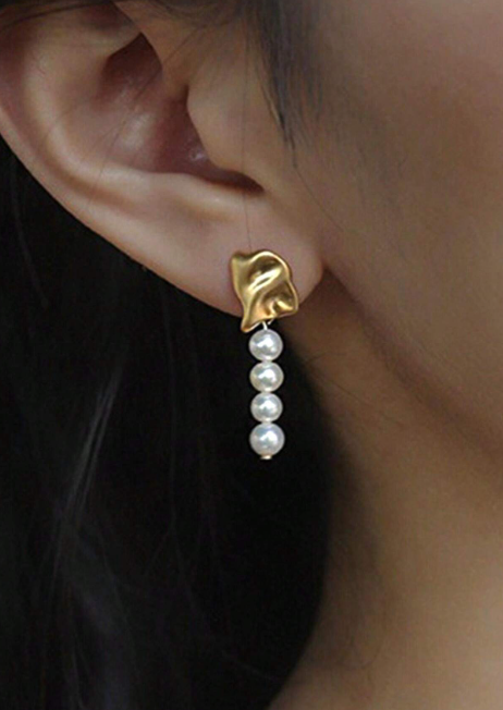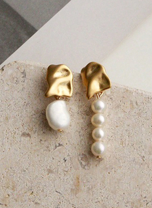 Shein - 1 Pair Elegant French-Inspired Asymmetrical Artificial Pearl Earrings