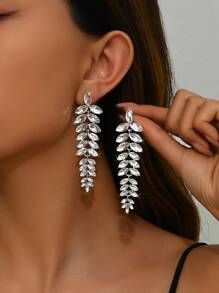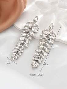 Shein - 1 Pair European & American Exaggerated Fully Rhinestone Leaf Earrings