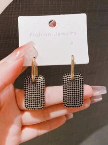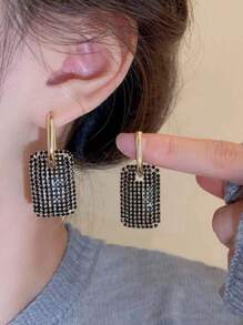 Shein - 1 Pair European & American Style Exaggerated Geometric Full Diamond Earrings