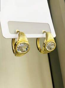 Shein - 1 Pair European Vintage Retro Stripe Desgin Zriconia Copper Hoop Earrings