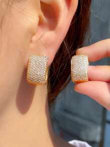 Shein - 1 Pair Fashion Cubic Zirconia Hoop Earrings