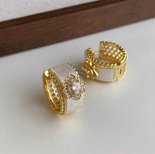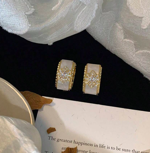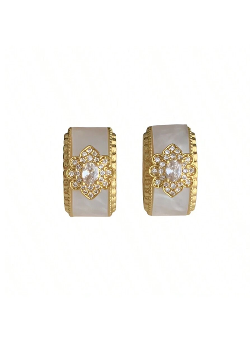 Shein - 1 Pair Fashion Diamond Flower Decor Light Grey Blue Flower Drop Earrings