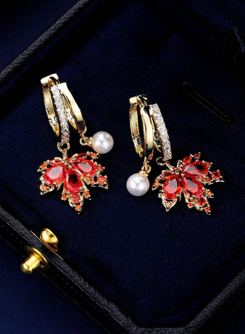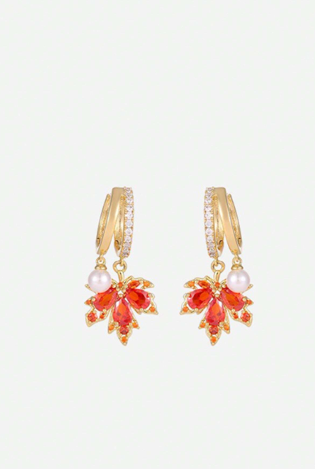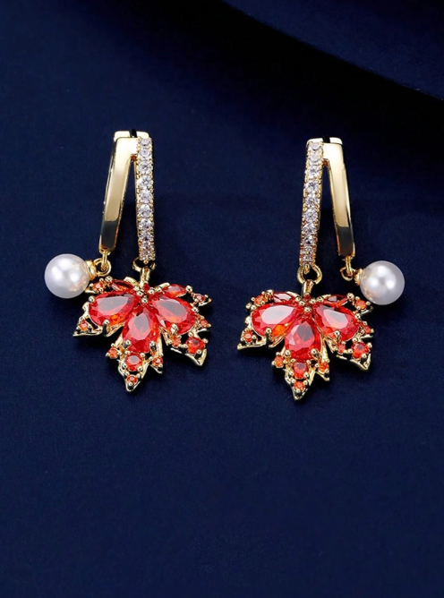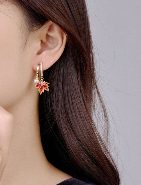 Shein - 1 Pair Fashionable Delicate Zirconia Maple Leaf Design Clip-On Earrings For Women