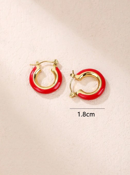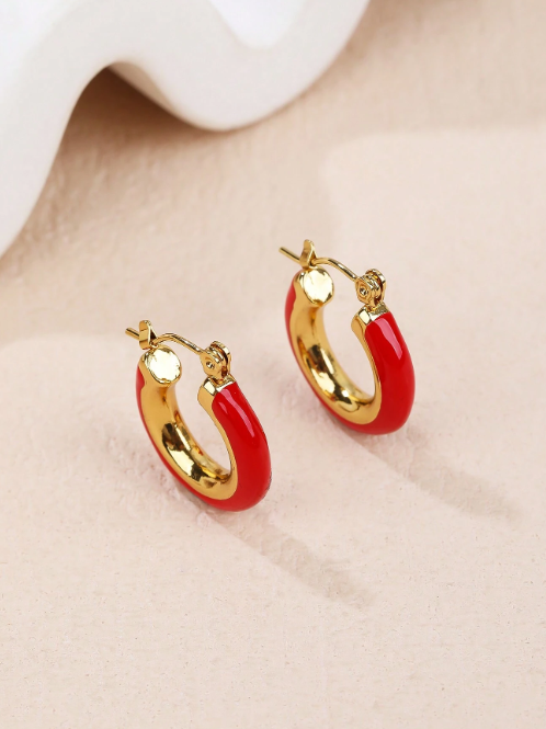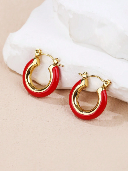 Shein - 1 Pair Fashionable Retro Red Dripping Glazed Stainless Steel Earrings