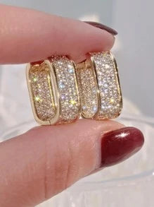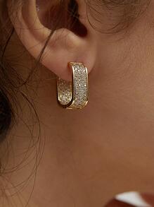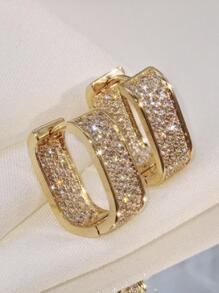 Shein - 1 Pair Glamorous Cubic Zirconia Hoop Earrings For Women For Wedding Anniversary Engagement Party Jewelry Valentine's Day Gift