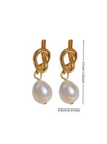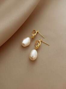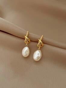 Shein - 1 Pair Knotted Faux Pearl Dangle Earrings,Vintage And Elegant Knot Shaped Ear Studs
