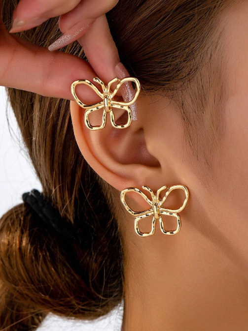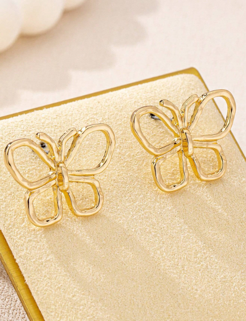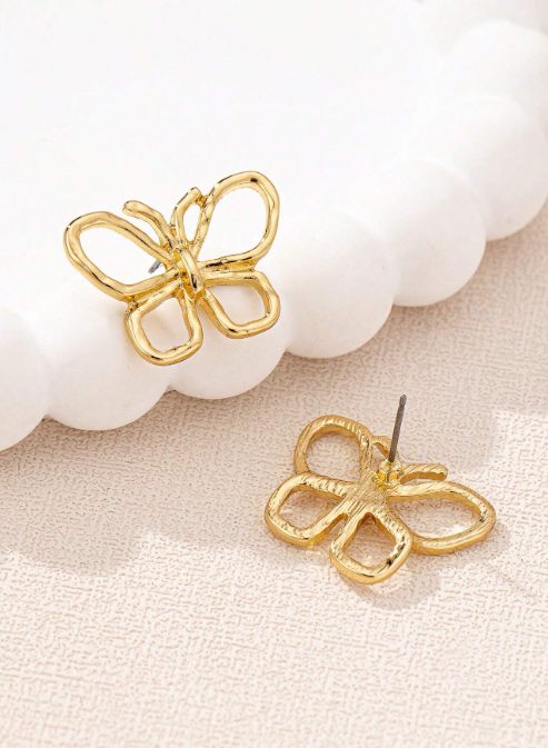 Shein - 1 Pair Of Fashionable, Versatile, Hollow Butterfly Design Women's Earrings
