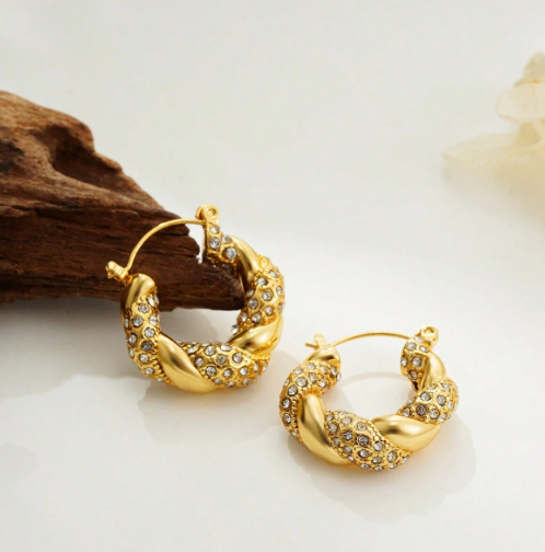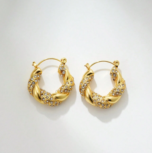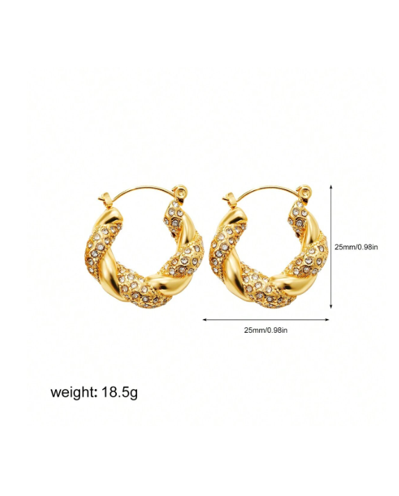 Shein - 1 Pair Stainless Steel Cubic Zirconia Asymmetrical U-Shaped Hoop Earrings