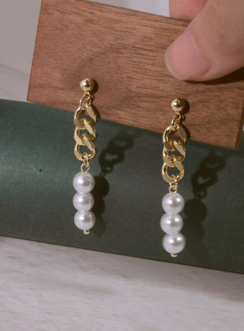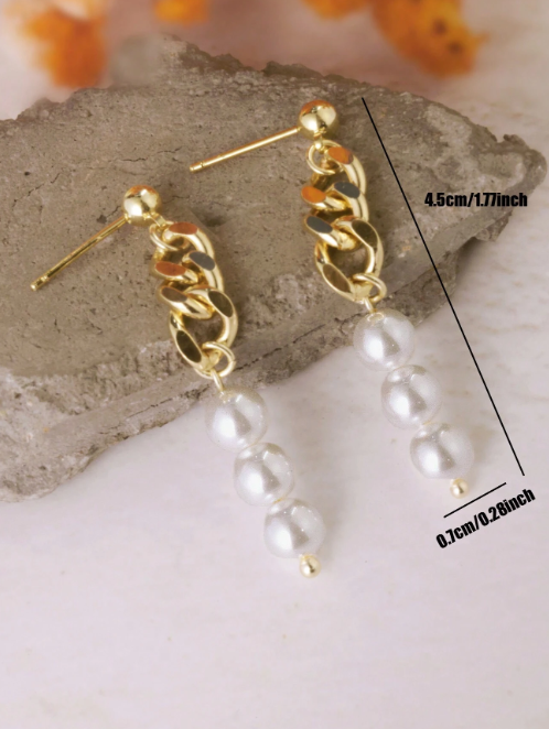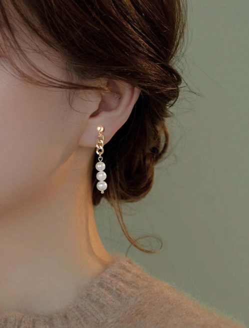 Shein - 1 Pair Vintage French Style Chain & Bead Pendant Earrings