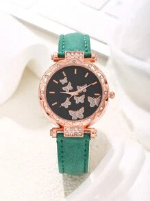 Shein - 1 PC Rose Gold Women's Full Diamond Seven Butterfly Quartz Watch