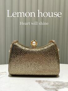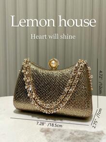 Shein - 1 Piece Gold Shiny Rhinestone Decor Chain Handle Clutch