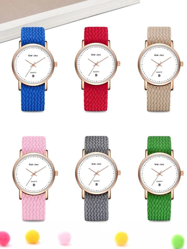 1 piece quartz watch with round index dial and 5 pieces nylon strap