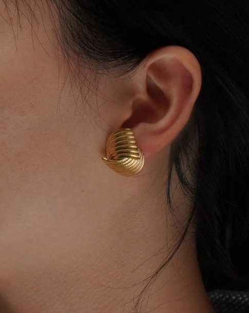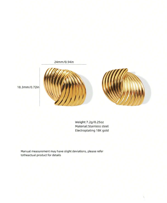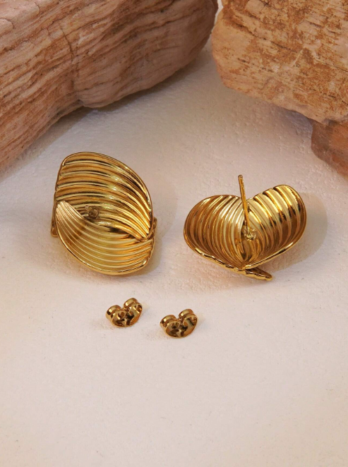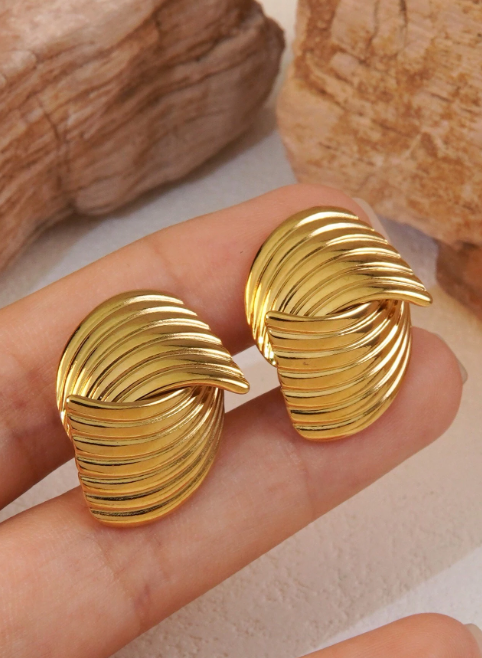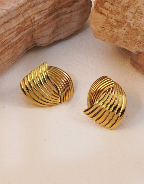 Shein - 1 Set Of 2 Pcs Stainless Steel Geometric Striped Fan Shaped Earrings