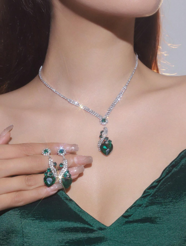 Shein - 1 Set Of Fashion & Shiny & Luxury Party Rhinestone Necklace, Earring Set