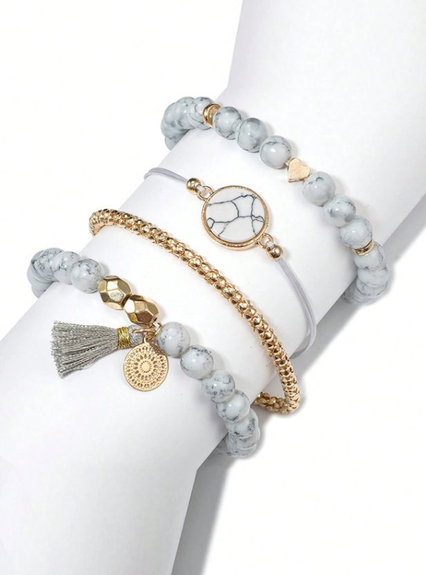 Shein - 1 Set Women 3-Eye Roman Scale Dial Quartz Watch And 4pcs Bracelet Set,