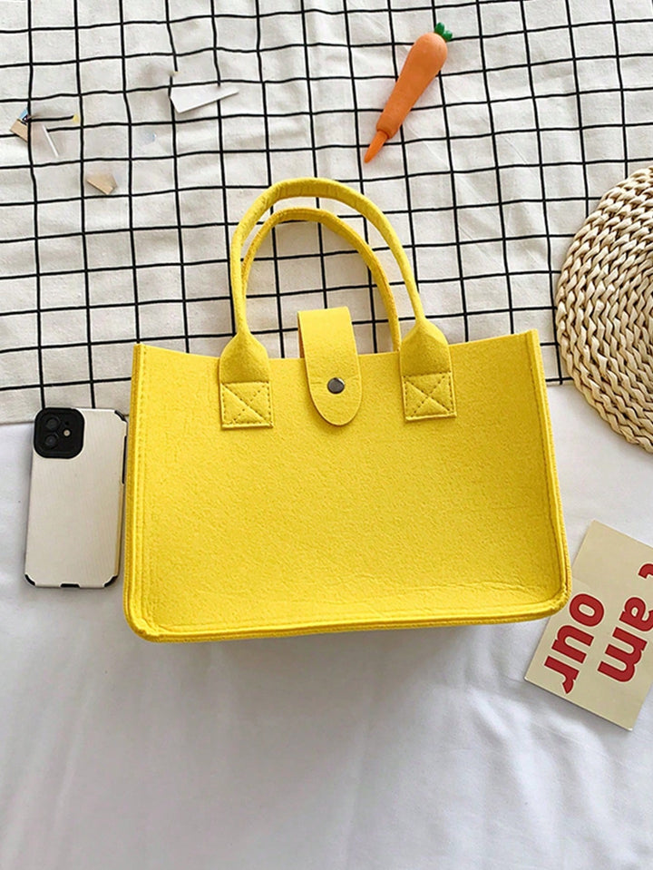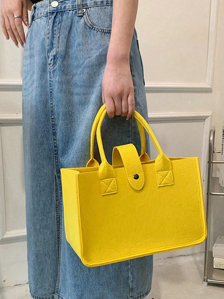Shein - 1 yellow hand-held one-shoulder felt tote bag