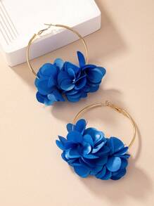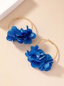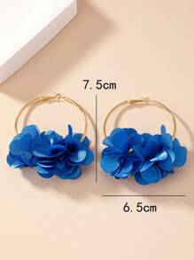 Shein - 1pair Blue Fabric Floral Hoop Earrings