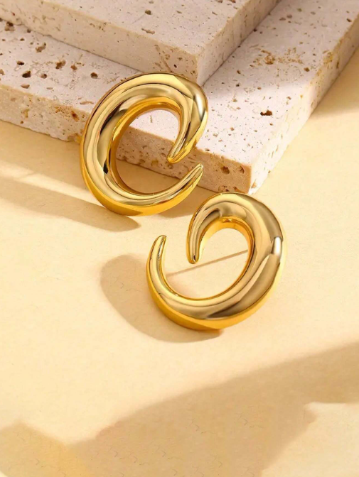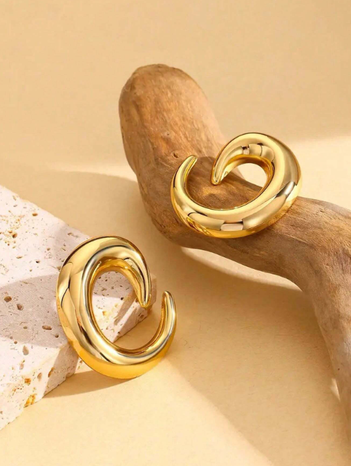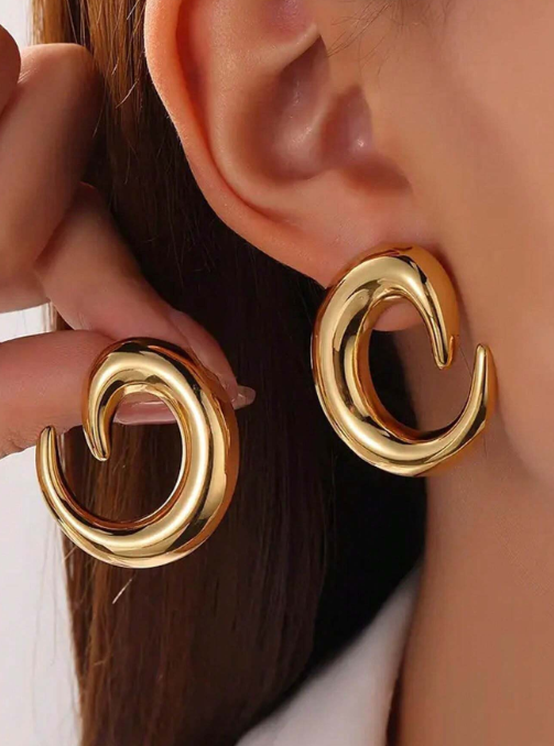 Shein - 1pair Elegant &Amp; Cute Stainless Steel Hoop Earrings - Chic Daily Wear Accessory For Women