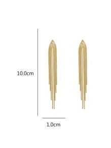 Shein - 1pair Elegant & Fashionable Geometric Shaped Metallic Chain & Tassel Long Earrings