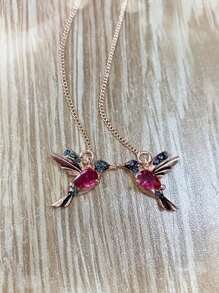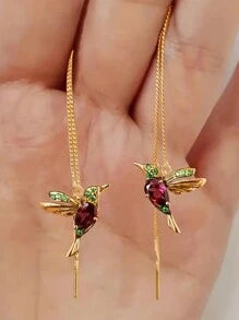 Shein - 1pair Elegant Hummingbird Design Shiny Synthetic Gem Inlaid Drop Earrings