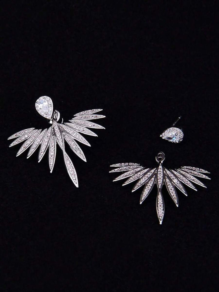 Shein - 1pair European And American Style Fashionable Micro-Inlaid Cubic Zirconia Stud Earrings