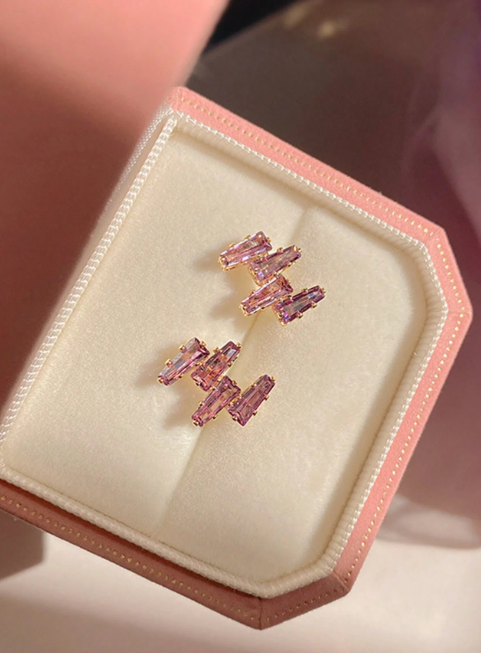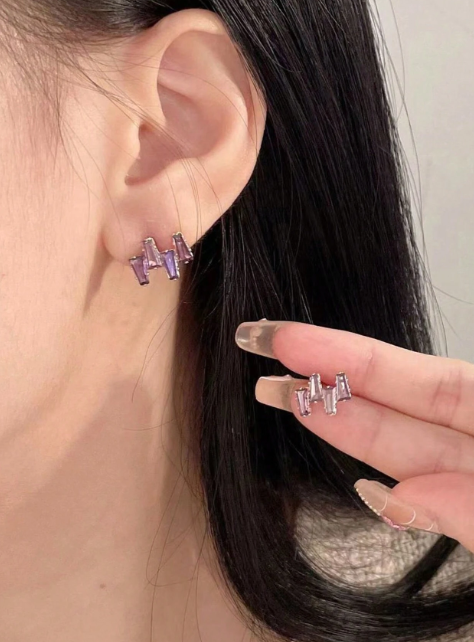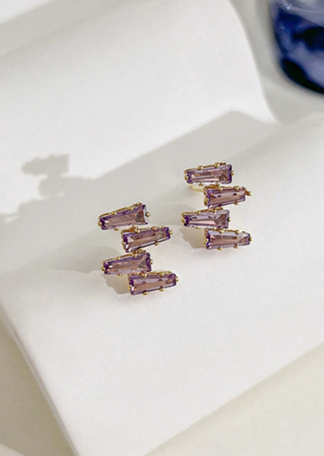 Shein - 1pair Fashion Copper Inlaid Purple Zirconia Geometric Luxury Elegant Stud Earrings