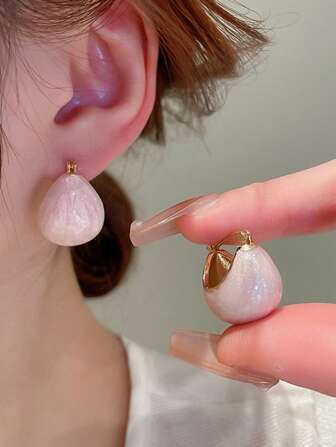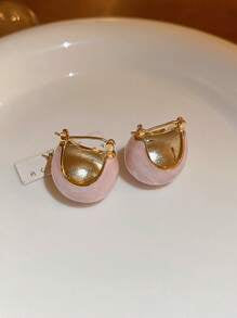 Shein - 1pair Fashion Copper Stone Decor Hoop Earrings For Women For Daily Decoration