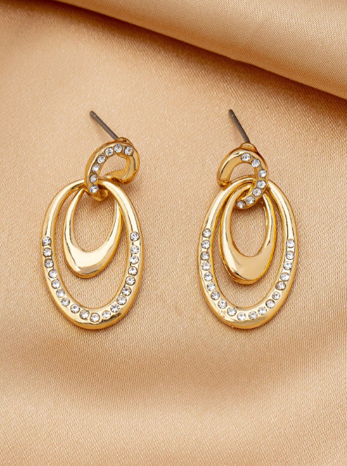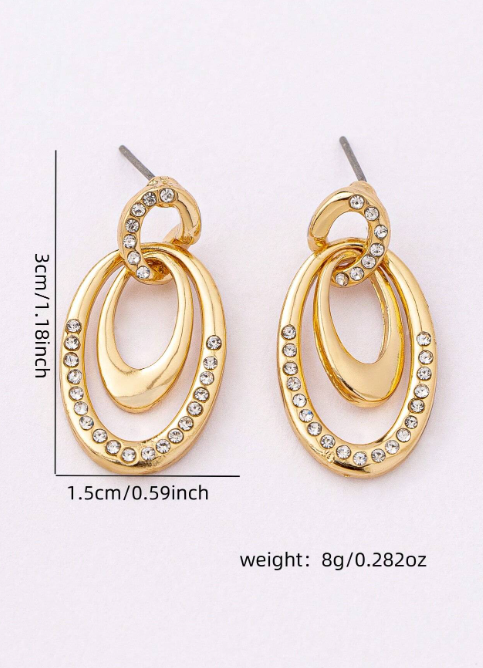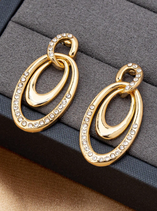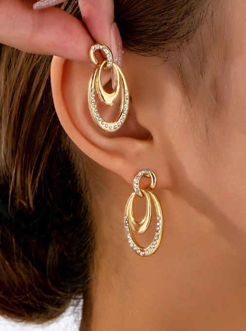 Shein - 1pair Fashion Geometric Rhinestone Dangle Earrings For Women